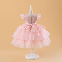 Kids Girls Pink Pearl-Trimmed Beaded Dress, Ball Gown