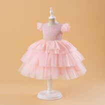 Kids Girls Pastel Floral Puff Sleeve Dress Tulle Party Ball Gown with Ruffles And Bow Dress
