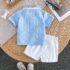 Baby And Toddler Boy Horse Ridding Sky Blue Collar Tee With White Short 2pcs