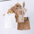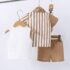 Baby Boy And Toddler Brown Stripe Shirt With White Inner Vest And Brown Short 3pcs