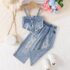 Girls Distressed Denim Outfit Set with Accessories – Summer Casual Style