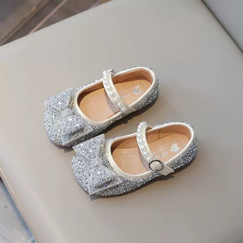 Be the first to review “Kids Girls Silver Glitter Dress Shoes with Bow and Pearl Strap” Cancel reply