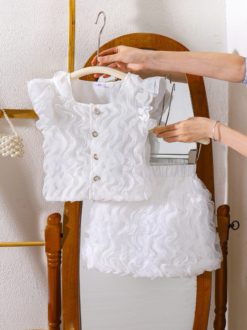Kids Girls White Ruffled Two-Piece Set with Flutter Sleeves and Skirt 2pcs