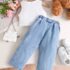 Toddler Girl Sleeveless Angel White Top With Denim Bow Trouser 2pcs