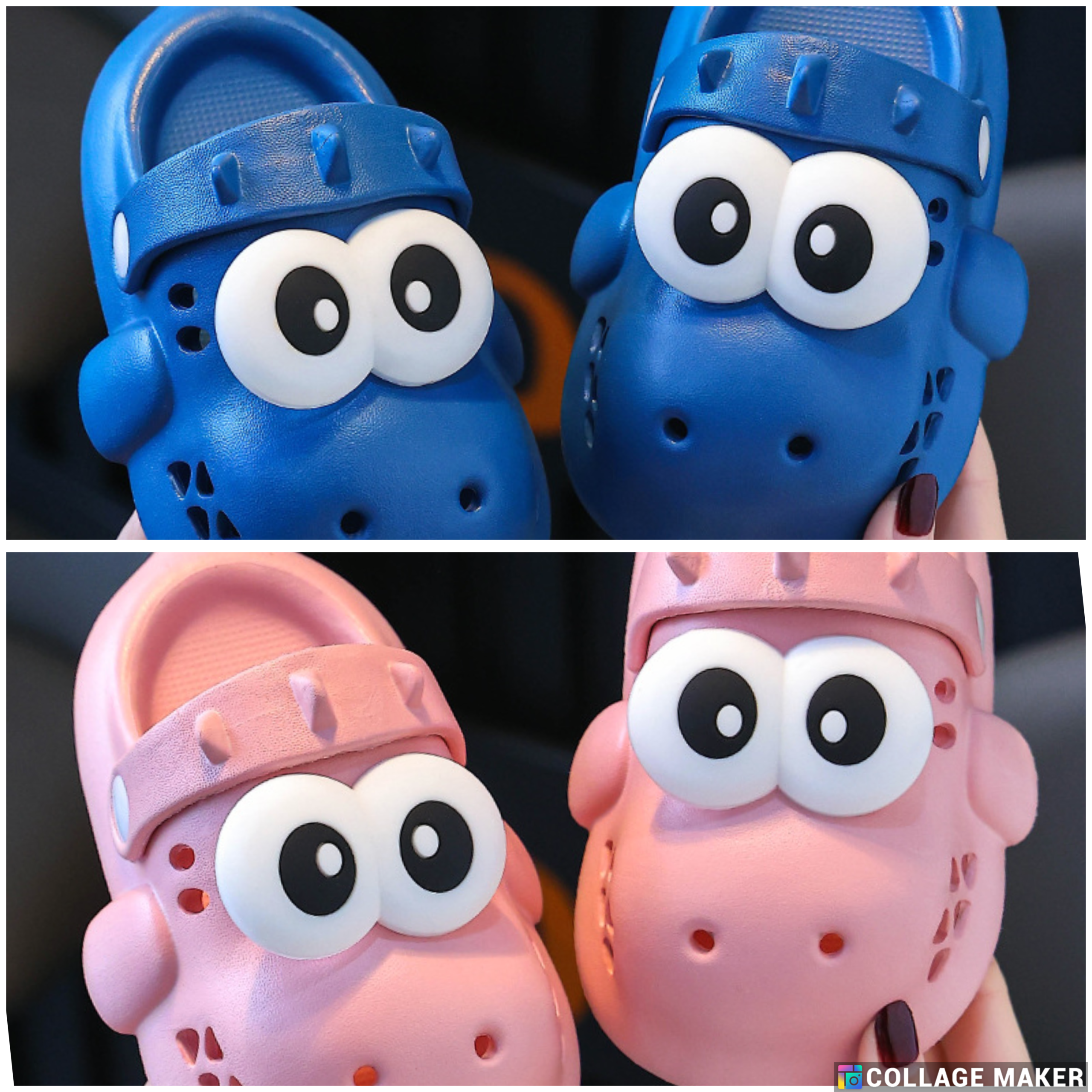 Unisex Kids Blue Dinosaur Face Crocs Shoes – Cartoon Slip-On Sandals